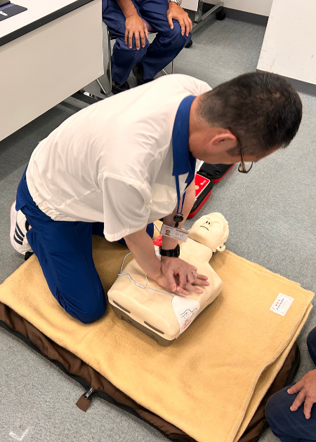 2025年7月、浜松市役所消防局警防課の講師を招き、当社拠点にて「普通救命講習1」を実施しました。