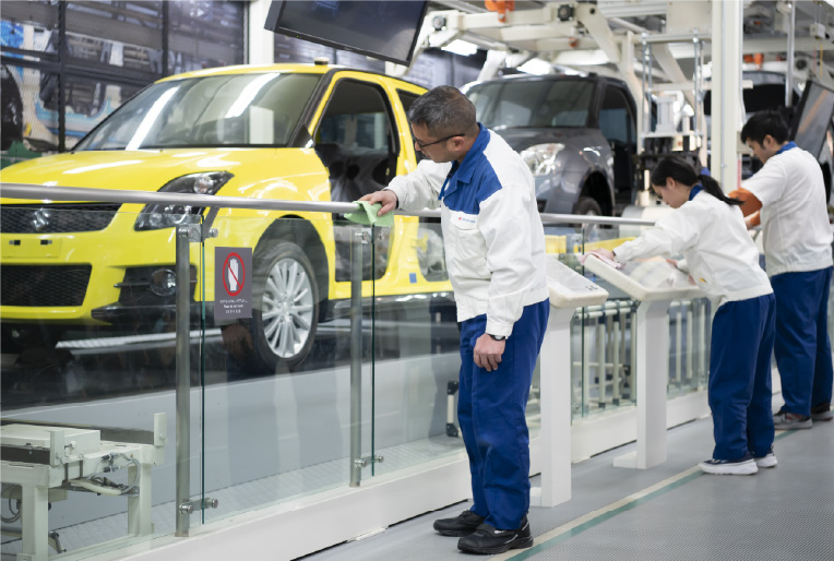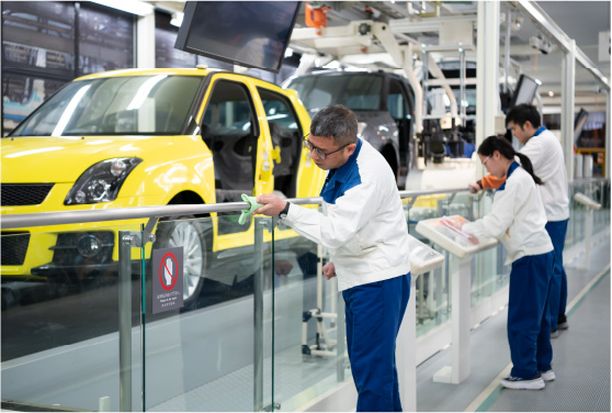 主にスズキ株式会社の社内フロアー、会議室、トイレ、階段、食堂、各工場寮、研修施設等の清掃作業を行っています。