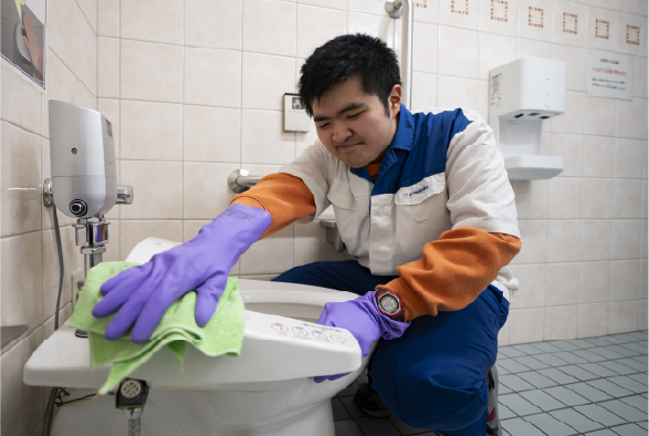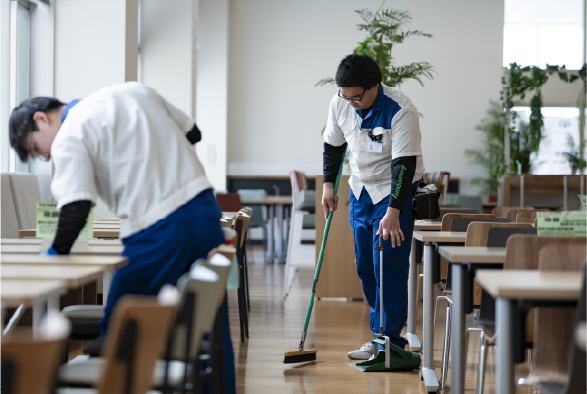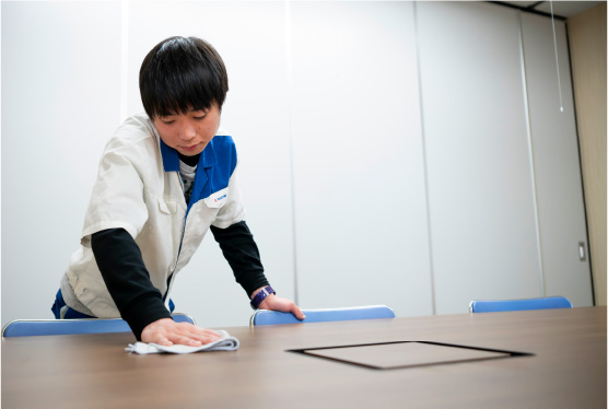 また、指導員・管理者で各社員の適性を判断しながら、チームメンバー・清掃場所を定期的にローテーションします。様々な環境でチャレンジすることで適応能力を身に着け社員のレベルアップを目指しております。