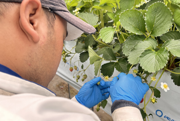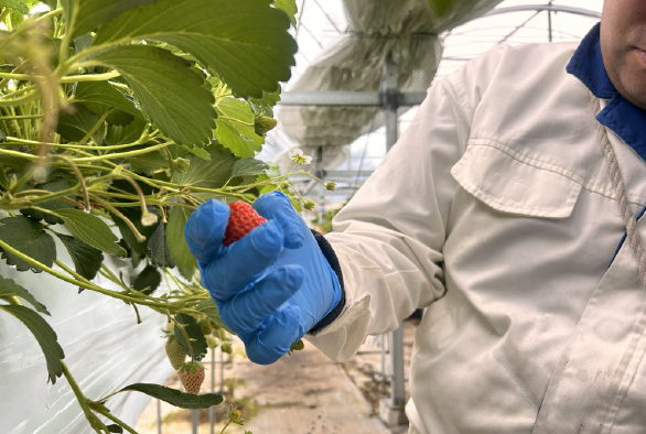 竜洋農園では主にハウスで苺を栽培しており、12月~5月にかけて収穫・販売しております。その他、露地でキャベツや白菜、ナスなど季節の野菜も栽培しております。