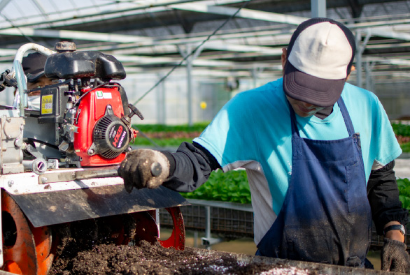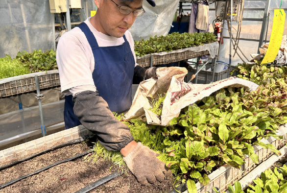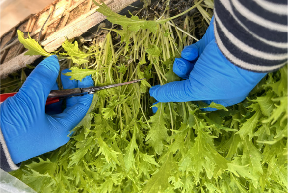 浜松ハウスではベビーリーフを年間通して栽培しております。収穫後はスズキの社員食堂や、浜松市内のホテルなどへ卸し売りをするほか、地域での販売をしております。