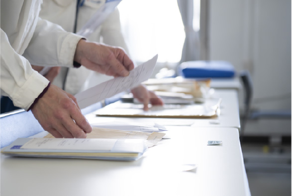 メール便業務では、毎日2回、郵便物を各部署ごとに仕分けをして席までお届けします。