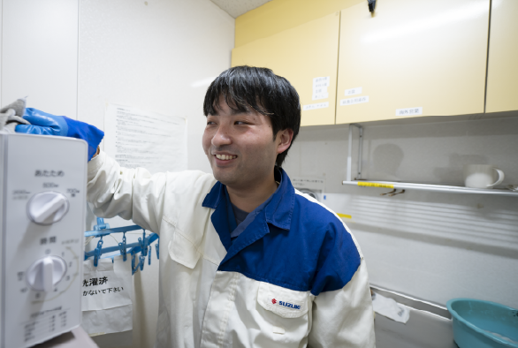 被服出庫業務では、スズキ社員やお客様が使用するユニフォームの出庫作業を担当しています。